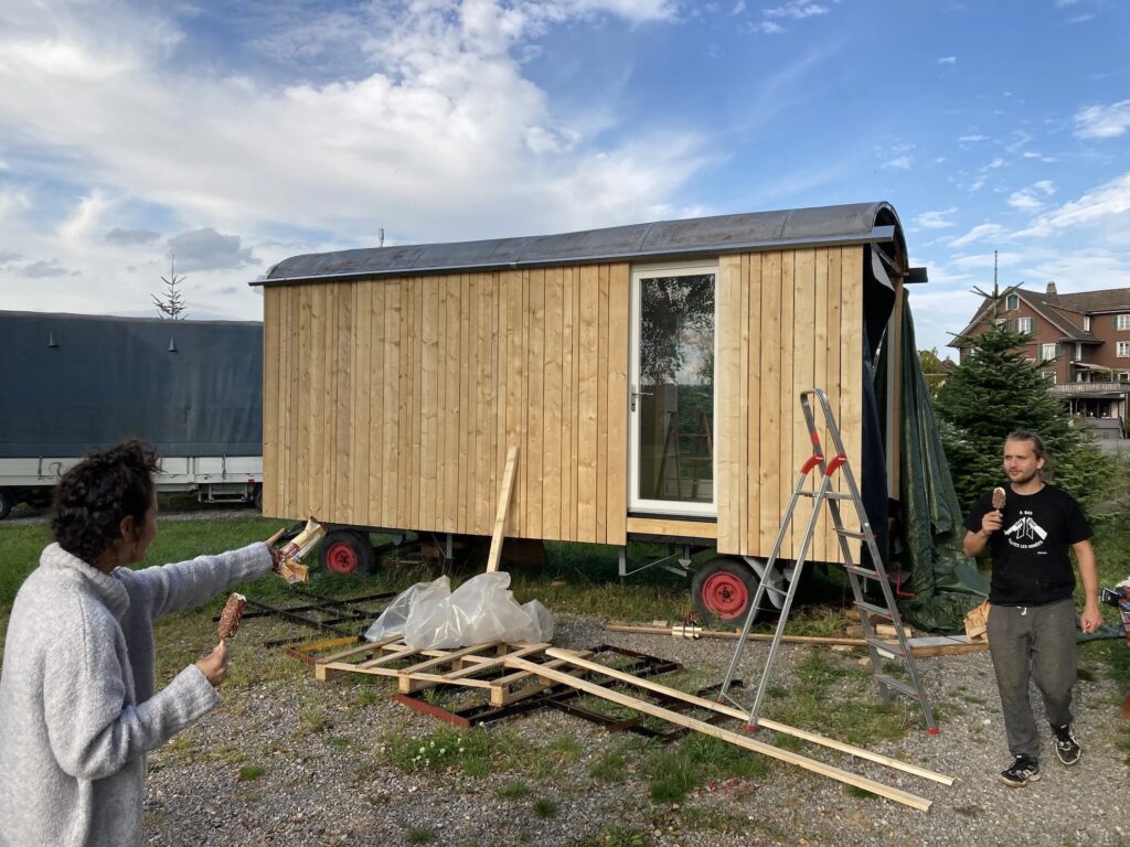Mit der Hilfe von vielen Köpfen und noch mehr Händen gelang es, innerhalb eines Jahres den Wagen zu bauen: von der Betonbasis bis zum Dimmlicht alles eigenhändig vermessen, verglast und verschraubt.